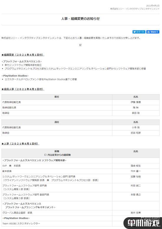 索尼SIE日本工作室今天正式重组,官方发布了重组后人事、组织变更的公告。