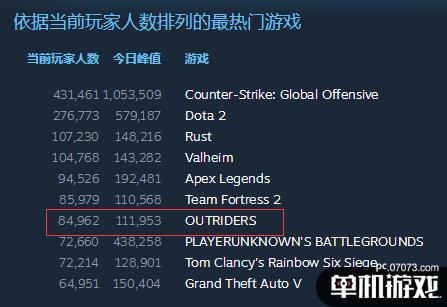 《先驱者》Steam今日玩家人数峰值111953人,发稿时在线84962人,位列热榜第七。