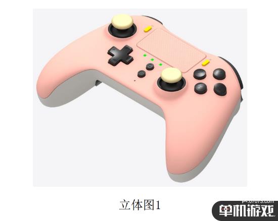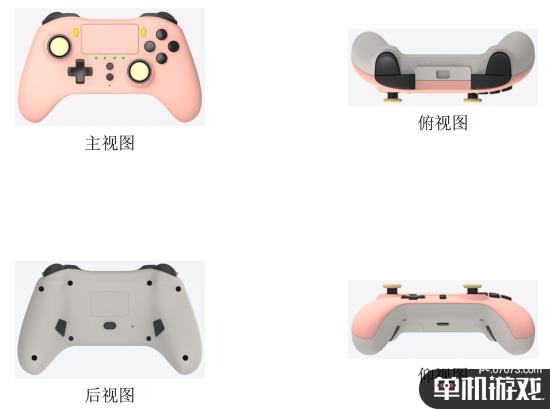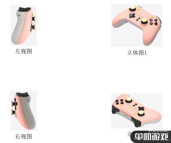 根据专利说明,本外观设计用于游戏娱乐,以下是该手柄各个视角下的展示图,有粉色和黑色两种款式。