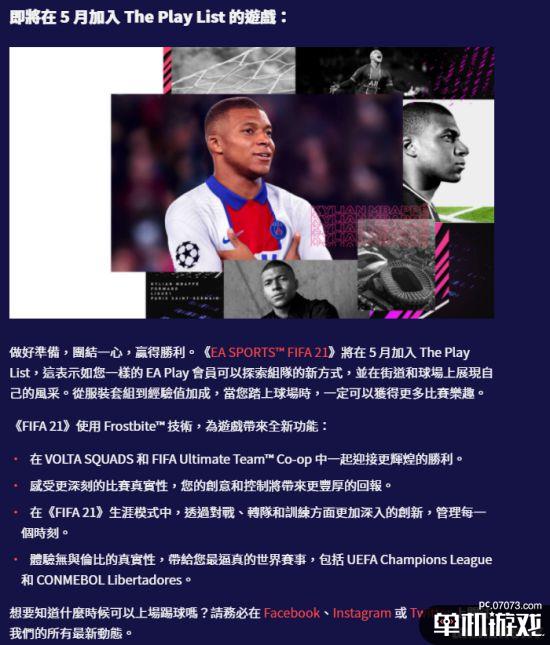 EA官方宣布《FIFA 21》将于今年5月加入EA Play/Xbox Game Pass。