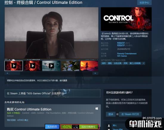 1.《控制:终极合辑》Steam开启史低促销
