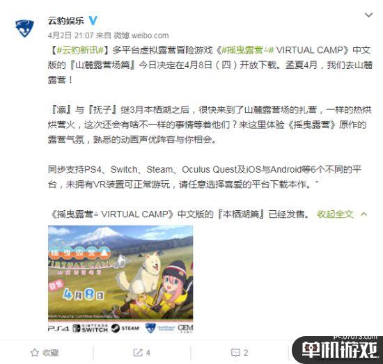 根据云豹娱乐官博消息,大热的慢节奏露营动画《摇曳露营》的衍生VR游戏《摇曳露营△ VIRTUAL CAMP ~山麓露营场篇~》将于4月8日正式发售。