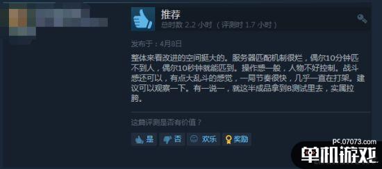 较为消极评价方面:玩家表示“匹配不到人”、“游戏无聊,玩法固定单一”、“画质差,手感拉跨”等等。后续消息我们将持续关注。