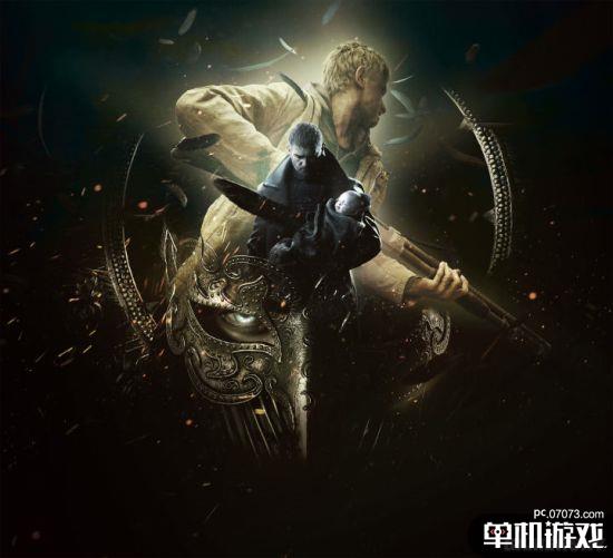 同时还有一张艺术主题画,画中有拿着步枪的伊森、抱着婴儿的克里斯以及最下方带着乌鸦面具的米兰达夫人。艺术总监Tomonori Takano表示,面具像是一只乌鸦的嘴。乌鸦是作为恐怖的象征,同时它也是整个村庄的设计主题,它们会出现在游戏中。同时因为米兰达夫人在村子里也扮演着象征性的角色,所以在设计上他们也采取了同样的主题。