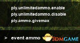 输入event ammo,上面显示ply.unli....一大串,锁定第一条的关键词.ena,按下TAB选择 并回车即可。