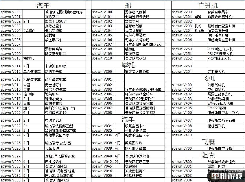 按下~键(ESC下面)或F1键呼出控制台,如需要载具,输入spawn v,之后控制台会补后面可供选择的指令,按下TAB键选择相应指令,再按下回车键即可。