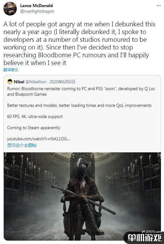 去年有网友爆料称动作RPG《血源》复刻版将登陆PS5和PC平台。但近日著名游戏数据挖掘者Lance McDonald表示之前的这些“爆料”都是所谓的“内部人士”私下分享的,导致出现了非常多的传言。他强调称:“它们100%是假的”。