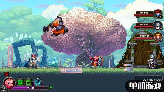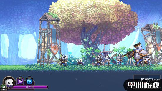 本作是一款动作类Rogue游戏,玩家能够在征途中收集不同的“头骨”,通过更换头骨来切换不同的作战方式及能力,但最多只能同时保留两颗头骨,可谓是真正的“接头霸王”。