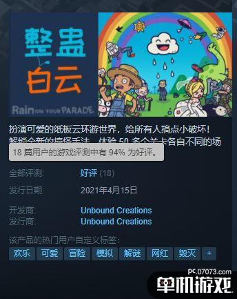目前该游戏的评价不多,但好评率高达94%。