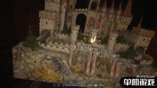 演示中展示了一个小游戏,旋转一个城堡模型,将小球滚动到目标位置。
