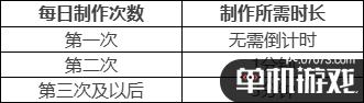 2-每日首次制作(0点刷新)无需耗时,从第二次开始需要等待一定时间: