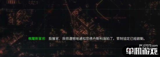 一段时间后,你会听到更多关于有人 "需要结束它 "的对话,屏幕上方会出现 "核弹进入 "的警告。在这之后,比赛结束了,并播放了一段电影,显示控制协议达到100%。当我们看到一枚核导弹飞向空中并击中了福尔丹斯科市中心,产生了巨大的爆炸和蘑菇云时,一名俄罗斯军官宣布 "福尔丹斯科已经沦陷"。