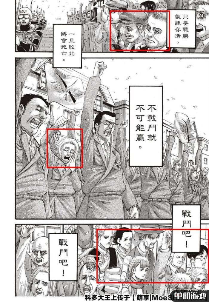 比如下图,第一格的记者有着明显不屑的神情,第二格曾为推翻王家出过力的希琪在无聊的打着呵欠,最后一格的萨沙一家也也表现出了明显的厌恶。如果谏山创真的是一个极端右翼分子,那为什么还要加入这些细节呢?所以我认为直接扣上一个右翼的大帽子有失偏颇。