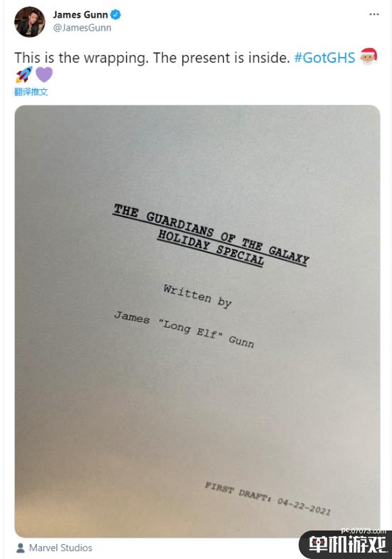 古恩近日完成了《假日特辑》的初版草稿,他通过推特展示了剧本的封面并且在推文中写道:“这是包装,而礼物在里面。”