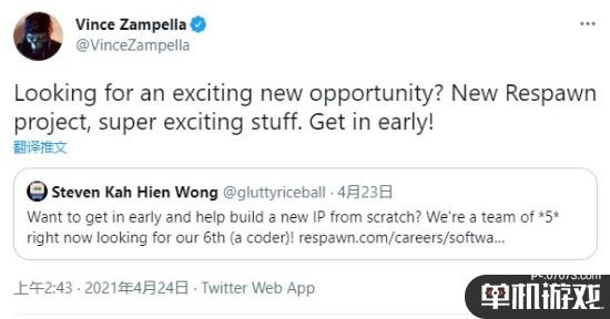 重生工作室领导人Vince Zampella今天转发了一条招聘启事,据他所言这则启事来自工作室旗下的全新项目。而从招聘信息来看,目前该项目正处于“孵化”状态,一起来了解一下这个正在发展中的新项目。