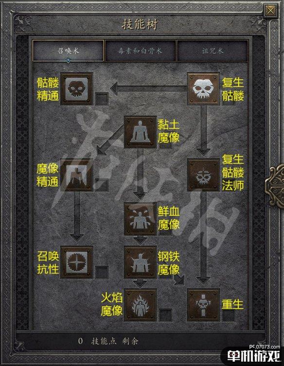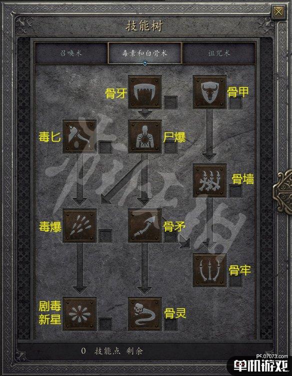 技能分为【召唤术】、【毒素和白骨术】和【诅咒术】。