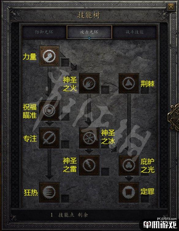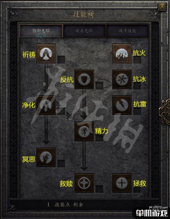 圣骑士单人开荒时单人开荒建议以【战斗技能】为主要加点派系,优先升级盾反、冲锋类的防反技能,光环也最好以防御类为主。