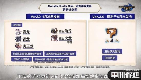 根据官方介绍,在本次更新中将为《怪物猎人:崛起》加入三只古龙:钢龙、炎王龙、霞龙。另外,本次更新还将加入新的霸主怪物:霸主角龙、霸主雄火龙等等。在本次更新之后也将开放HR(猎人等级)和相关功能。
