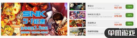 发行商SNK的优惠活动时间为4月26日-5月9日,全场2.5折起,包括《拳皇》系列、《合金弹头》系列、《侍魂NeoGeo合集》都会参与活动,还有拳皇97加10元得拳皇13的优惠套餐。