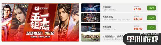 游民游戏商城游戏发行商5.1大放价,本次有凤凰游戏、SNK、Gamera Game和Another Indie为大家带来好玩且实惠的游戏。凤凰游戏5.1钜惠,全场低至1.8折起,《三国群英传8》、《三国群英传1-7历代合集包》、《幻想三国志》系列都参与活动,优惠多多。凤凰游戏5.1钜惠时间为4月28日-5月9日,欢迎大家来挑选。