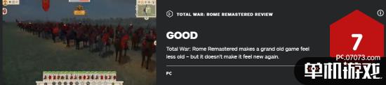IGN公布了《罗马:全面战争重制版》的评分:7分。IGN方面认为本作在视觉上的升级非常明显,但是对于落后、陈旧的游戏玩法并未基于同样的关注。