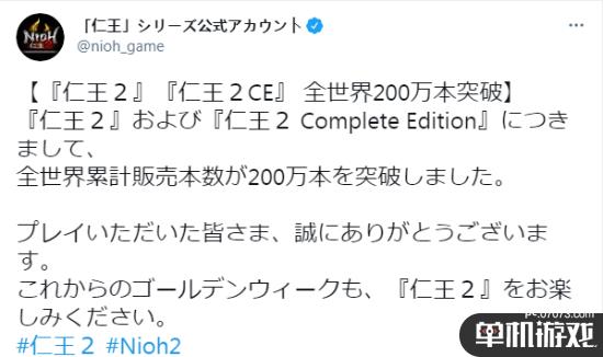 《仁王》官方今日宣布:《仁王2》及《仁王2:完全版》累计销量突破200万份。