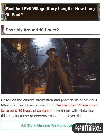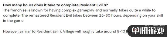 据givemesport网站上的消息称,“生化危机以复杂的游戏玩法而闻名,所以通常来说要花很长时间来通关。像《生化危机7》,《村庄》大约也需要8到10个小时来通关。”