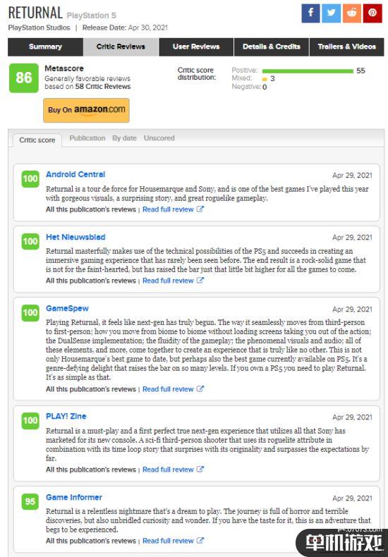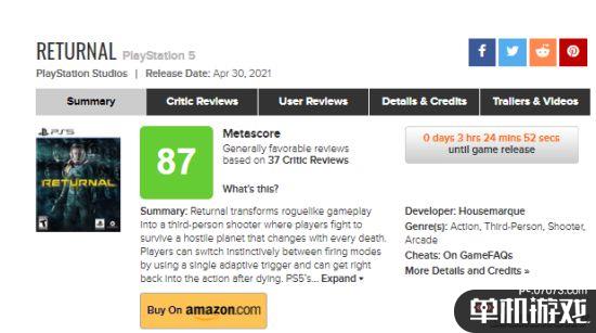 《Returnal》M站媒体评分新鲜出炉,均分87分,目前收录37家媒体评分,35家为好评,2家为中评。