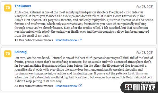 TheGamer认为《Returnal》确实拥有最令人满意的TPS游玩体验,但是它强迫玩家用它的节奏去面对它,这并不轻松。而死亡后重头再来的设定也让人的压力倍增。