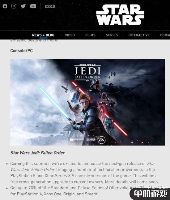 据星球大战网站消息,《星球大战绝地:陨落的武士团》PS5/Xbox Series版本将于今年夏季推出,并且支持拥有当前版本的玩家免费升级至次世代版本。