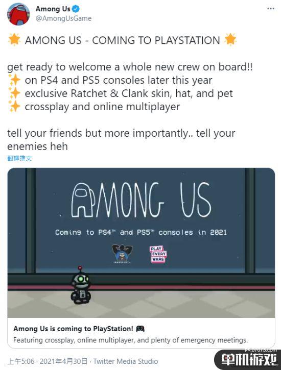 据《Among Us》官推宣布,游戏将于今年年内晚些时候登陆PS4/5平台,并且还有独家的瑞奇与叮当皮肤,支持跨平台游玩。