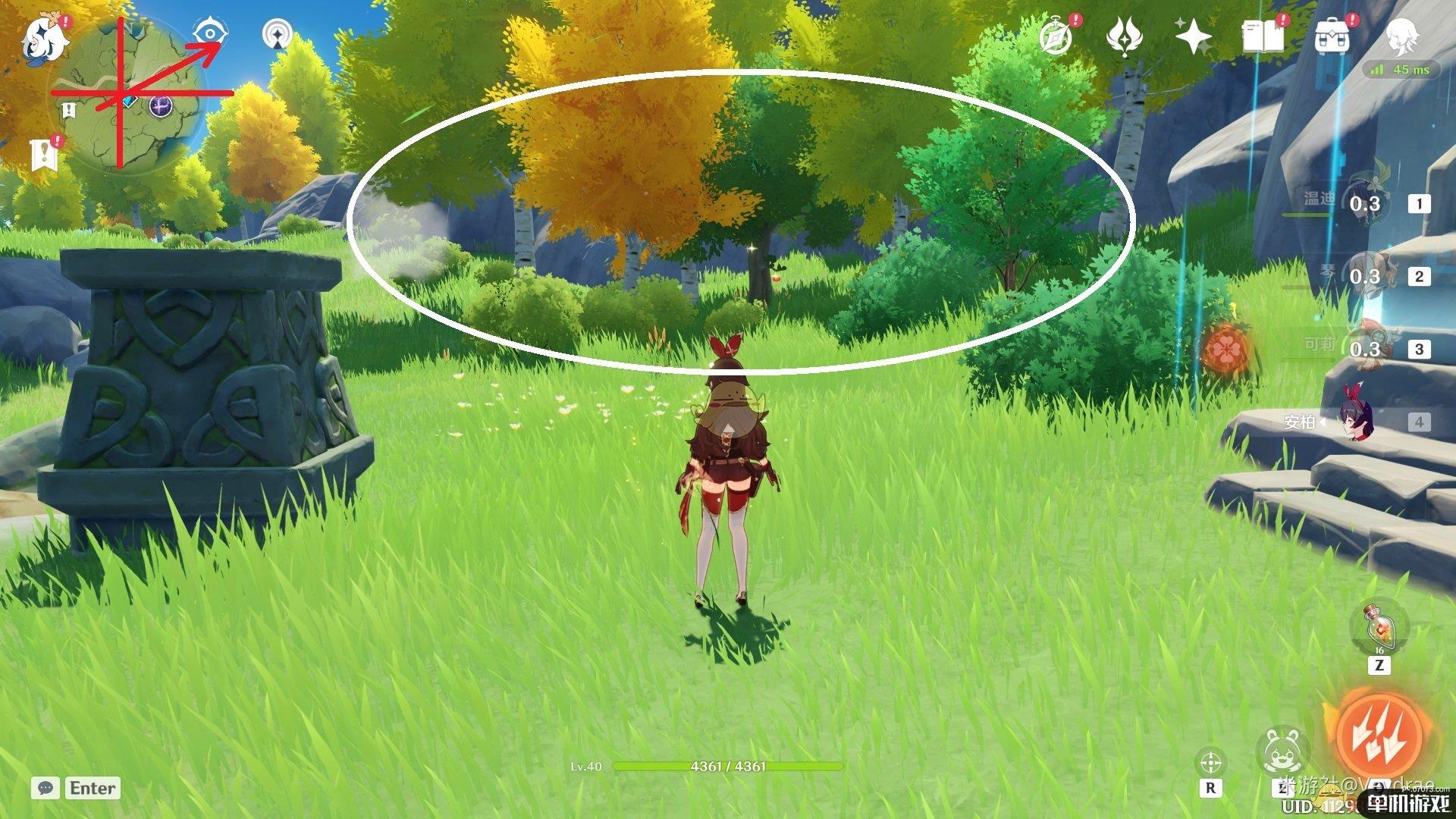 落地之后向东北方向看,约5株。西南方向还有另外五株。(个人建议走东北方向,因为附带一株萃华木)