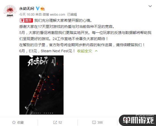 在微博正文中,官方表达了对于玩家们积极支持测试的感谢,同时也表示将在5月份继续开发与打磨游戏。