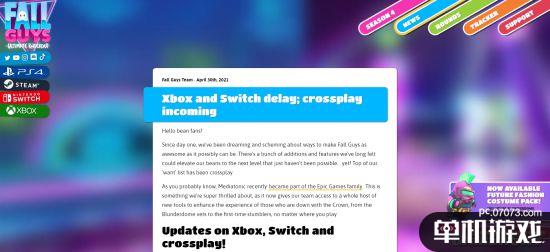 今天《糖豆人:终极淘汰赛》官方宣布,本作的NS版本和Xbox版本将延期上线。但同时,这两个版本的游戏上线时都会支持交叉联机功能。