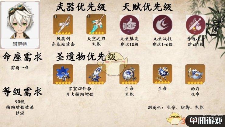 班尼特的主要定位是回复,所以建议替代角色优先级为:琴(双风)、迪奥娜(六命增伤,触发有一定条件)七七(五星)、芭芭拉(四星)。