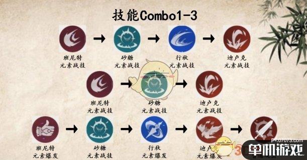 Combo1-3中的元素战技和普通攻击推荐连招为AEAEAE或AEAAAEAAAE。前者所需时间少,后者伤害总量多,且能使Combo1无缝循环(祭礼剑触发的前提下,未触发可切换Combo2循环)