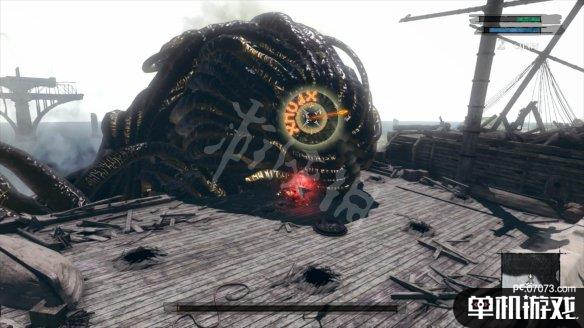 在船体开始崩塌,要迅速撤离时,一路上有不少触手挡路,需要玩家清理掉通过。