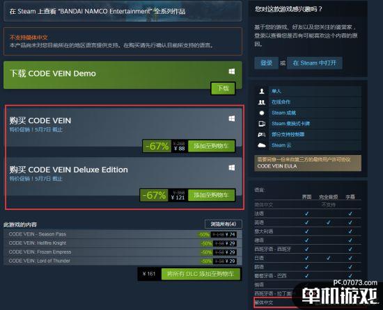 《噬血代码》现已在Steam开启史低促销活动,游戏本体优惠价88元,豪华版优惠价121元。游戏支持繁体中文,目前可以下载Demo试玩,感兴趣的玩家不要错过。