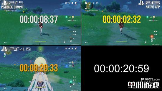 《原神》在PS4 Pro和PS5上都支持以4K分辨率运行。尽管开发者表示《原神》在PS5平台的纹理质量更高,但就实际体验而言PS4 Pro和PS5的纹理质量看起来是一样的。在玩家离开秘境返回大地图的加载过程中,PS4 Pro加载时间在20秒左右,PS5加载时间为2.32秒,PS5向后兼容模式加载时间为8.37秒。