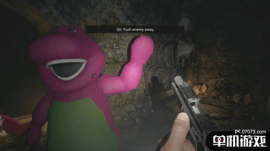 而这次,玩家Marcos RC将霸王龙巴尼替换掉了游戏中原来的敌人形象,在巴尼那令人发憷的笑容下似乎颇有些“儿童鞋垫”的感觉。