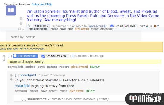 不过知名记者Jason Schreier近日在Reddit AMA中回答相关问题时,对“《星空》在今年年内发售”一事给出了否定的回答。而且他还进一步的否定了本作“会在E3上拿出有趣的内容”的猜测。
