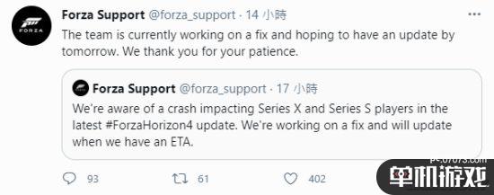 来自其他论坛的玩家自然也是报告了相同的问题。最终,《极限竞速》官方也发了一条推文,确认了问题的存在。