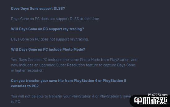 Bend工作室近日发布了《往日不再》PC版的FAQ,其中确定了本作会支持超宽屏显示、60FPS帧率、键鼠操作和自定义按键,还支持大部分控制器。不过遗憾的是本作将不支持DLSS和光追技术,也不支持PS平台交叉存档。