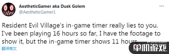 AestheticGamer声称:自本作发售以来,他已经游玩了超过16个小时,但《生化危机8:村庄》的内置计时器显示——他目前只游玩了11个小时。