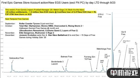 每当一部经典大作免费限时领取后,Epic商城的新用户都会迎来一定的增长。最明显的新用户增长就是《GTA 5》以及《文明6》,这两部作品限免分别吸引了700万以及200余万新用户。
