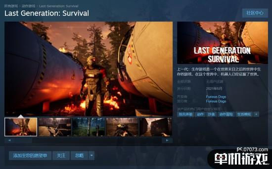 由Furious Dogs打造的游戏《最后一代:生存(Last Generation: Survival)》近日上架Steam商店,本作是一款沙盒冒险类型游戏,玩家将在被机器人占领的末世中生存。游戏将在今年5月进入到抢先体验阶段。