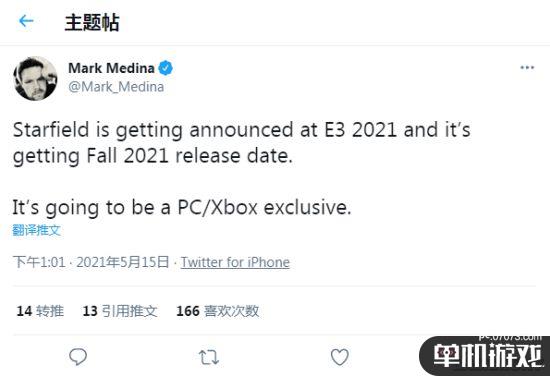 IGN编辑Mark Medina今天在推特上爆料称《星空》将会在E3上亮相,今年秋天发售。并且它会是PC/Xbox平台独占。