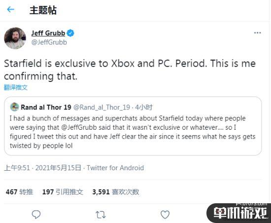 另外,VentureBeat的Jeff Grubb今天也发推表示《星空》是Xbox和PC独占,不过他的说法是限时独占。