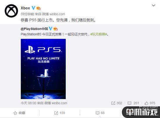 随后,中午Xbox官方微博转发了这条微博,并附文:恭喜PS5国行上市。您先请,我们随后就到。