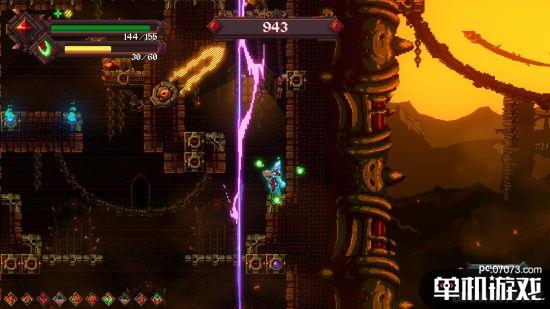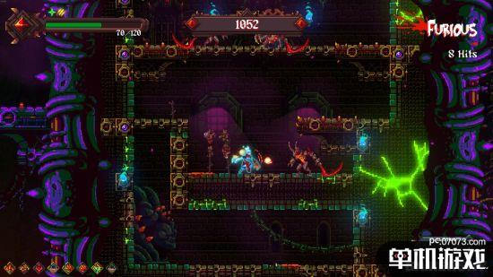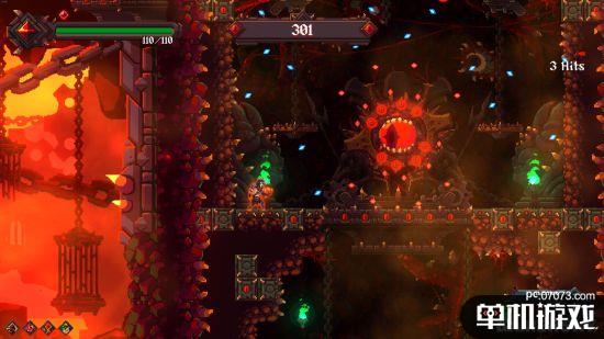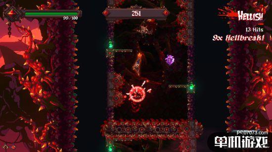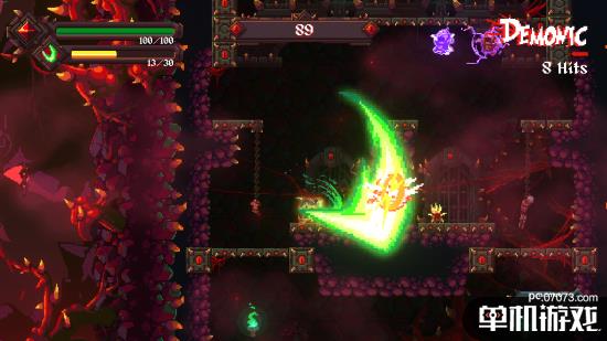 游戏过程中,伴随着来自地狱深处的重金属音乐和像素风画面,你能做的只有利用精妙的连招,灵活的跳跃和累积解锁的技能,在这炼狱之中越挫越勇,杀出血路,逃出生天。